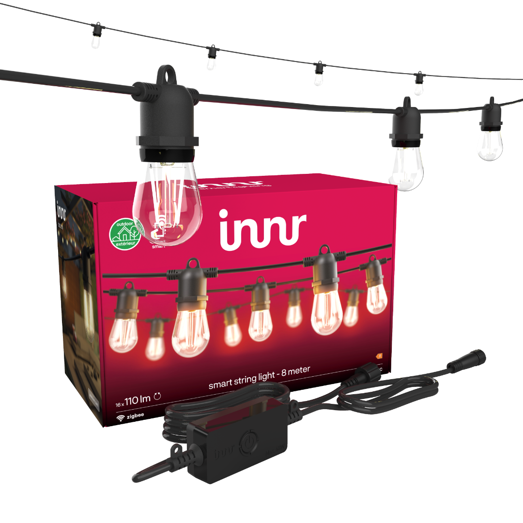 Hoe leuk is dit lichtsnoer van Innr voor in de tuin? Het snoer werkt op Zigbee dus is eenvoudig te koppelen met je bestaande Zigbee huishouden. Het betreft hier de basisset inclusief voeding en lichtsnoer van 8 meter met totaal 16 lampen. Deze basisset is uitbreidbaar met de uitbreidingsset van 4 meter met 8 lampen. Voor ingebruikname heb je een Zigbee Bridge nodig (niet inbegrepen). Het leuke design van de lampen zorgen ervoor dat ook gezellige avonden in de tuin helemaal sfeervol kunnen zijn en je Smart Home verreiken.