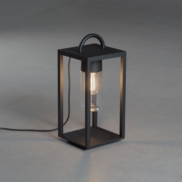 Deze tafellamp van Konstsmide is gemaakt van staal en glas en is zwart van kleur. Een prachtige lamp die mooi staat in uw tuin, bijvoorbeeld op een bijzettafel of op het terras. De lamp is exclusief lichtbron geleverd met een normale E27-ftting. Deze mag een max. wattage hebben van 40W. De lamp is wel inclusief aansluitsnoer van ongeveer 5 meter lang.
