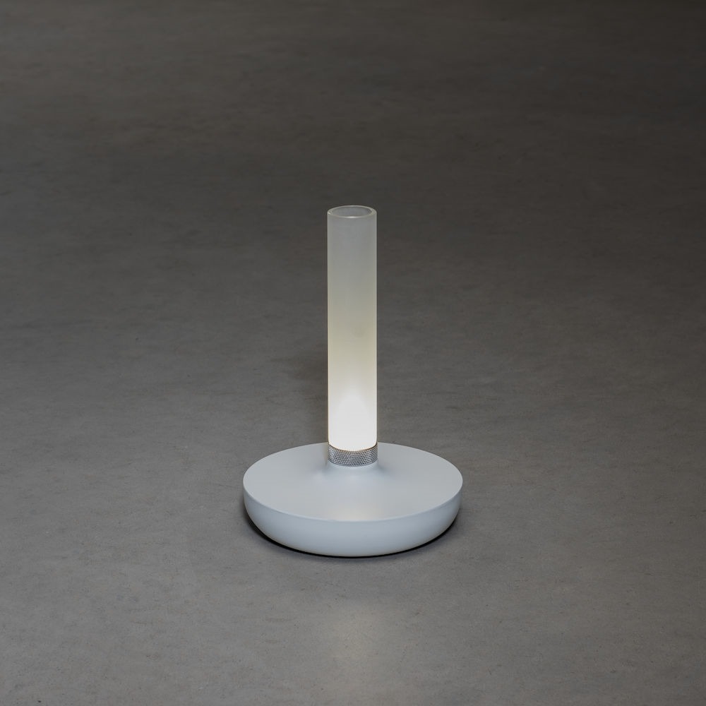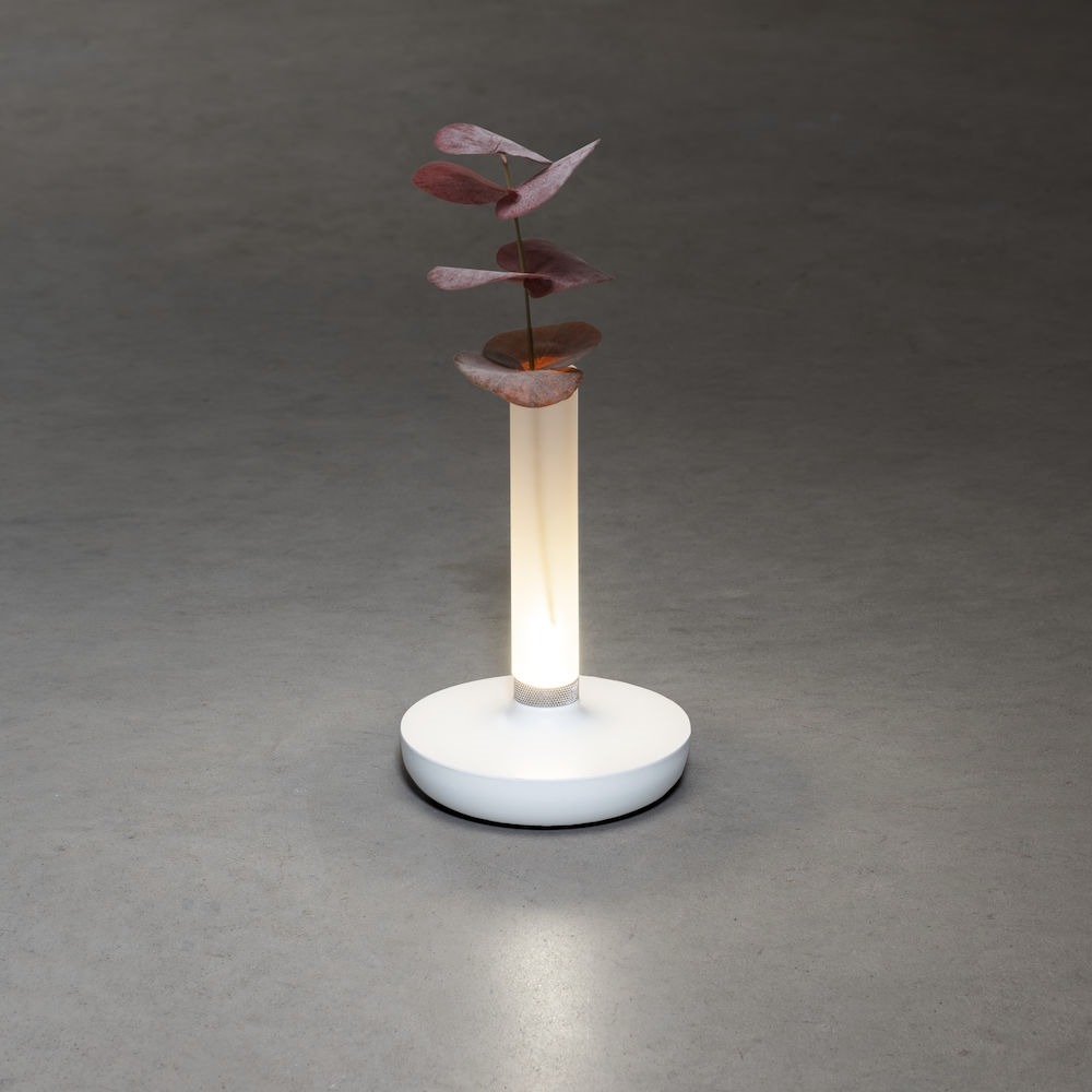 Leuk je buitentafel op met deze Biarritz tafellamp van Konstsmide. De lamp is een soort kaarsvorm met het prachtige matte glas, waar je ook wat leuke (nep)bloemen in kan zetten. Zo decoreer en verlicht je je buitentafel in één keer. De lamp is draadloos en wordt geleverd inclusief laadkabel, welke 6 uur neemt tot volledig opgeladen. Er zitten veel functies op de lamp, waaronder dat je de lichtkleur kunt wijzigen van 1800K naar 3000K en ook nog naar 4000K. Warmer licht als je wat meer sfeer wil of juist iets koeler licht als je wat meer licht nodig hebt. Bovendien kan je binnen de 3 lichtkleuren het licht ook nog eens dimmen met de dimmer onderaan de lange staaf, door simpelweg deze ring te draaien.