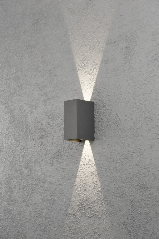 Prachtige donkergrijs gelakte aluminium wandlamp. De lichtbron van deze lamp schijnt twee kanten op en de stralingshoek van deze lamp is verstelbaar. Chique lamp voor aan de zijkant van het huis, of voor naast uw voordeur! Deze lamp wordt inclusief lichtbronnen (2x 3W) geleverd.