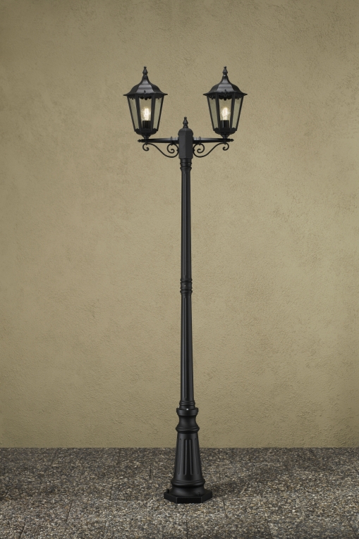 De Firenze serie is een collectie klassieke buitenlampen van Konstsmide. Combineer de diverse lampen met elkaar voor een leuk geheel. Het betreft hier een lantaarnpaal met 2 opwaartse lampen. De lamp wordt geleverd zonder lichtbron en heeft een 2x E27 fitting geschikt tot max. 100W. Ook wordt er een grondanker meegeleverd.
