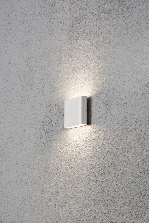 De Konstsmide wandlamp uitgerust met Power LED. De lamp heeft een unieke uitstraling door het licht wat zowel naar onder als naar boven schijnt. De kleur van deze lamp is matwit. Deze lamp heeft ongeveer 20.000 branduren.