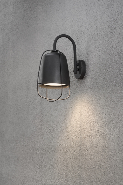 De Konstsmide wandlamp uit de serie Perugia. De kleur van deze lamp is matzwart. Deze lamp heeft ongeveer 20.000 branduren.