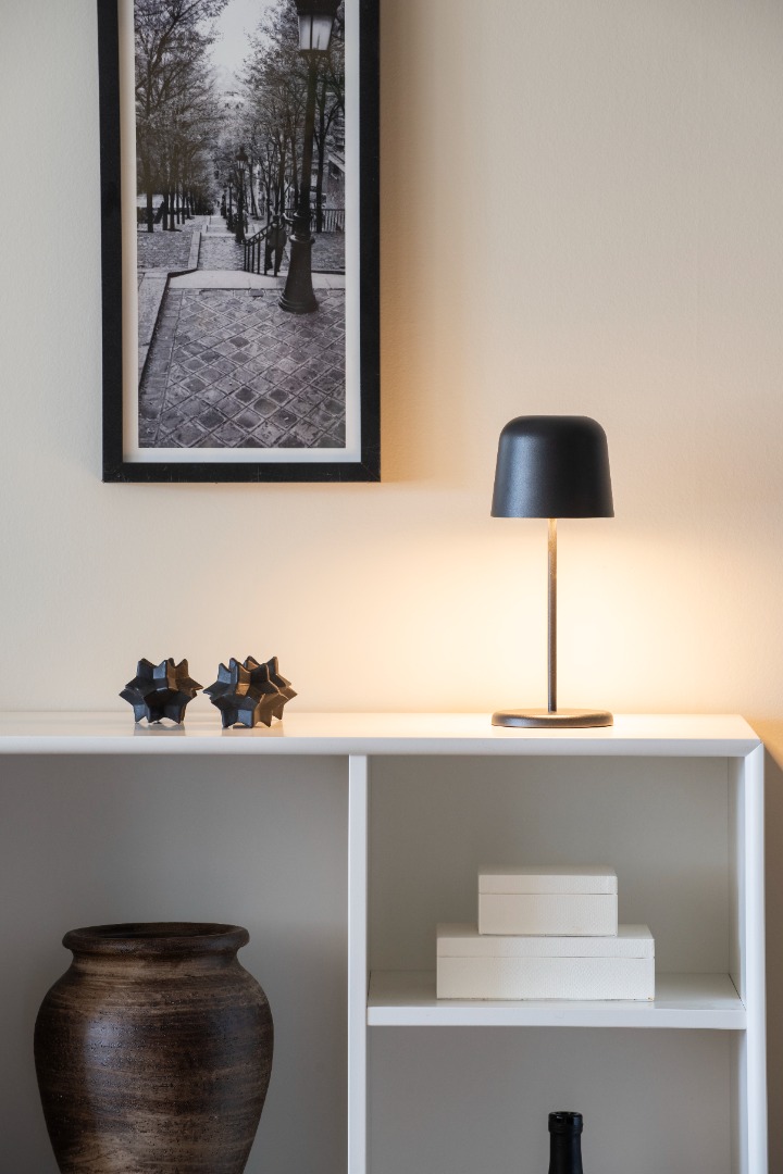 Deze Biot tafellamp van Konstsmide is op zichzelf staand al erg leuk, maar kan je ook nog je eigen draai aan geven doordat de lamp van de stang af te halen is. Zo kan je deze op bijvoorbeeld een vaas of wijnfles zetten (ja je bedenk het niet) om zo een leuke, nieuwe lamp te creëren. De lichtkleur van de lamp kan je instellen op 2200K of 2700K en tevens ook nog dimmen. De lamp kan je eenvoudig opladen via USB en zowel binnen als buiten gebruiken. Hoe ga jij deze lamp combineren?