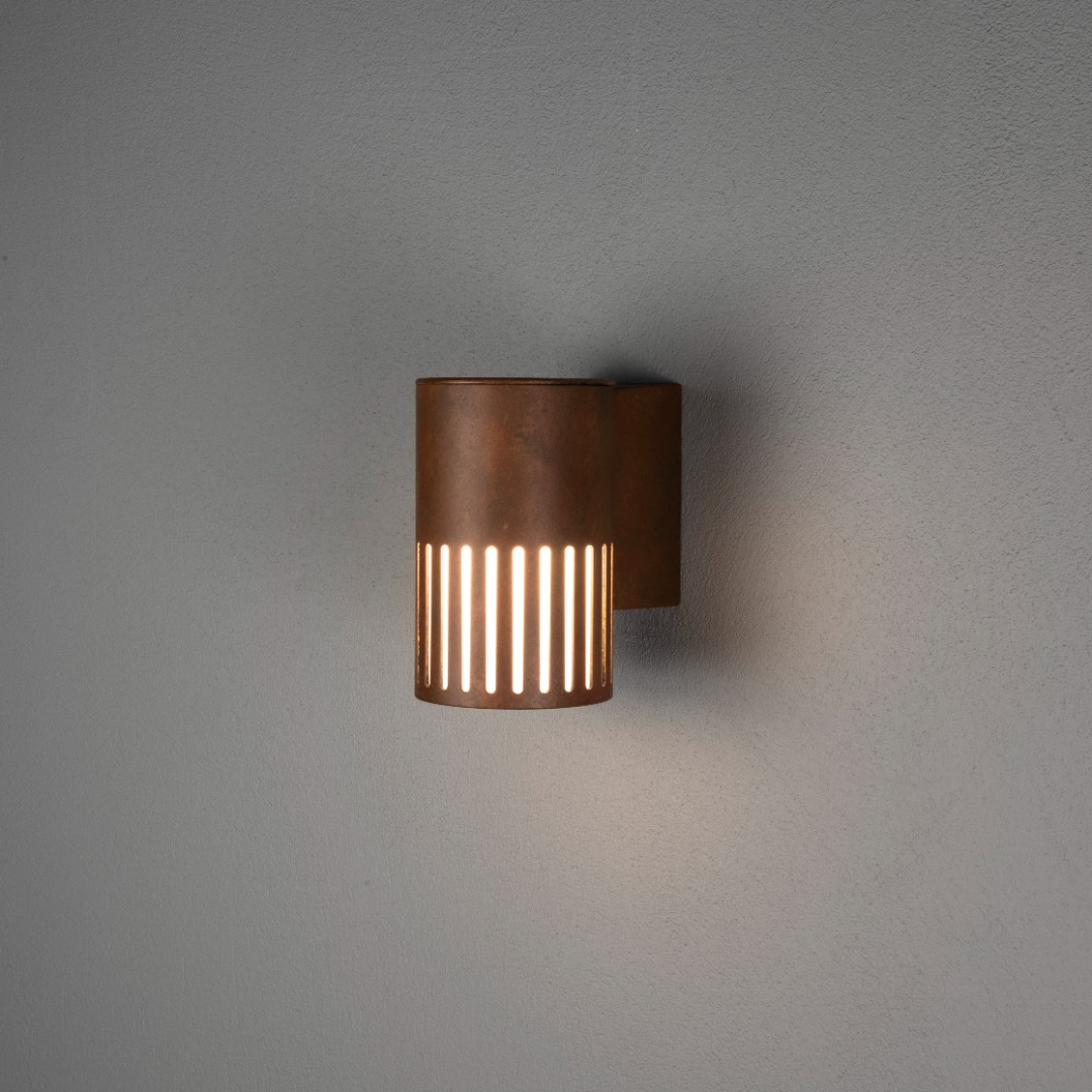 Een leuke wandlamp uit de Pistoia collectie van Konstsmide. Door het streepjespatroon geef deze neerwaarts hangende wandlamp een leuk lichteffect af zonder verblindend te zijn. Ook leuk om te combineren met de vloerlamp uit dezelfde serie. De lamp heeft een E27 fitting geschikt voor lichtbronnen tot max. 15W en deze is niet inbegrepen. Hang deze lamp bijvoorbeeld naast de deur of aan de muur bij de schuur en geniet van prachtig licht in een leuk design in een roestbruine kleur.