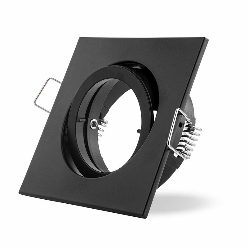 Een moderne vierkante inbouwspot in zwarte kleur met een zaagmaat van 6,8 cm. De spot is kantelbaar zodat je het licht zowel naar beneden als gericht kan laten schijnen en wordt afgesloten met een handige bajonetringsluiting. Standaard wordt de spot zonder fitting geleverd maar kan tegen meerprijs met zowel GU10 (230V) als GU5.3 (12V) worden geleverd. De spots hebben een IP waarde van 20 en zijn daarmee alleen geschikt voor droge ruimtes en niet voor bijv. de badkamer of buiten.