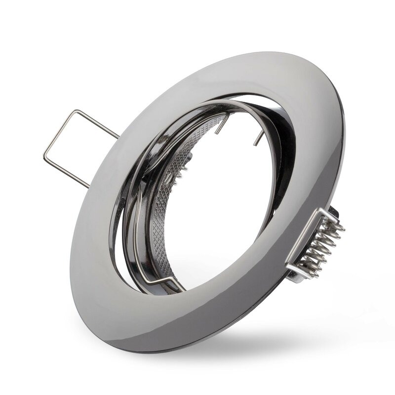 Een moderne inbouwspot in de kleur Gunmetal (grijs met messing finish) met een zaagmaat van 6,8 cm. De spot is kantelbaar zodat je het licht zowel naar beneden als gericht kan laten schijnen en wordt afgesloten met een klemveer. Standaard wordt de spot zonder fitting geleverd maar kan tegen meerprijs met zowel GU10 (230V) of GU5.3 (12V) worden geleverd. De spots hebben een IP waarde van 20 en zijn daarmee alleen geschikt voor droge ruimtes en niet voor bijv. de badkamer of buiten.