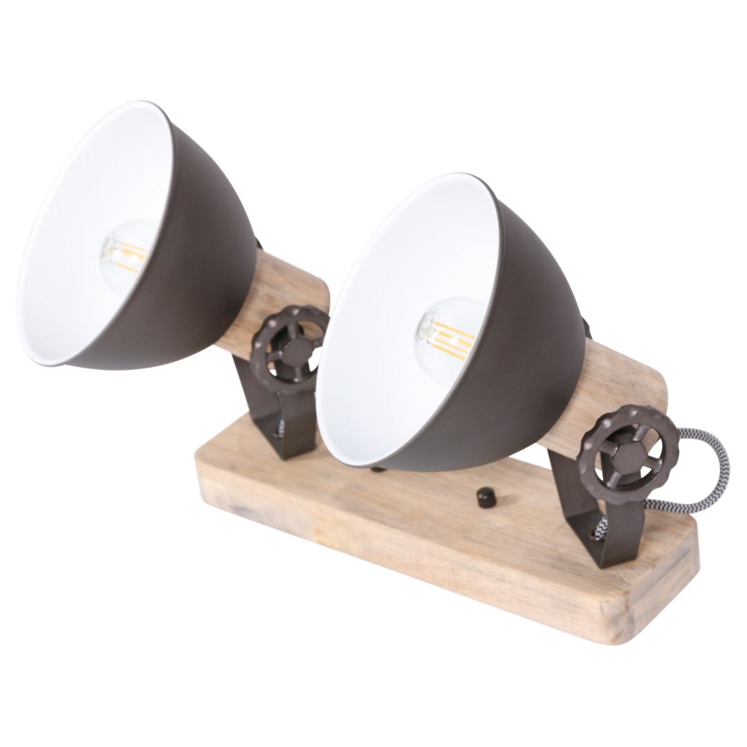 Antraciete 2-lichts opbouwspot uit de bekende Gearwood collectie van Steinhauer. Door zijn robuuste uitstraling en verstelbare wielen past deze spot ideaal in een industriële inrichting. Door middel van de grove verstelknoppen kunt u de spots zo richten dat precies hetgeen wat u wil verlicht wordt. De lamp heeft naast de mooie antraciete kleur houten details die de lamp echt stoer maken. Wat handig is aan de lamp is dat hij niet alleen als plafondspot kan worden gebruikt maar ook als wandspot.