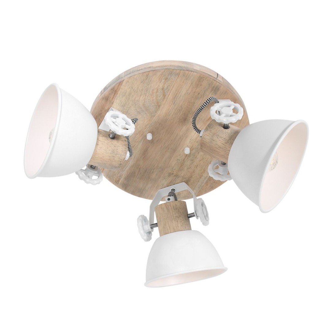 Door zijn robuuste uitstraling en verstelbare wielen past deze spot ideaal in een industriële inrichting. Door middel van de grove verstelknoppen kunt u de spots zo richten dat precies hetgeen wat u wil verlicht wordt. De lamp heeft een mooie witte kleur met houten details.