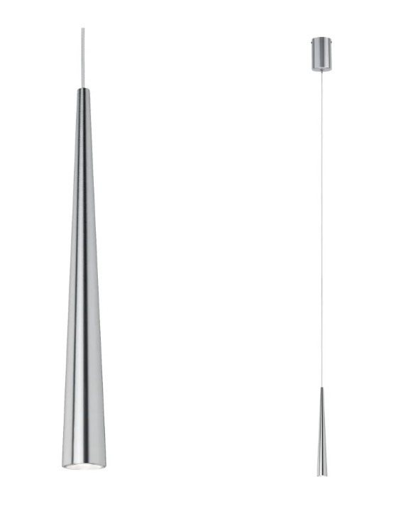 Een leuke kegelvormige hanglamp. Beschikbaar in 1- en 3 lichts. Het betreft hier de 1-lichts versie. Door middel van de koker op de plafondplaat in te duwen kan je de lengte van de lamp eenvoudig verstellen. Er zit een LED lichtbron van 6,4W en 2700K in
