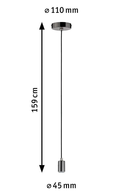 • Afmetingen: Hoogte max. 159 cm, Diameter plafondplaat 11 cm, Diameter pendel 4,5 cm