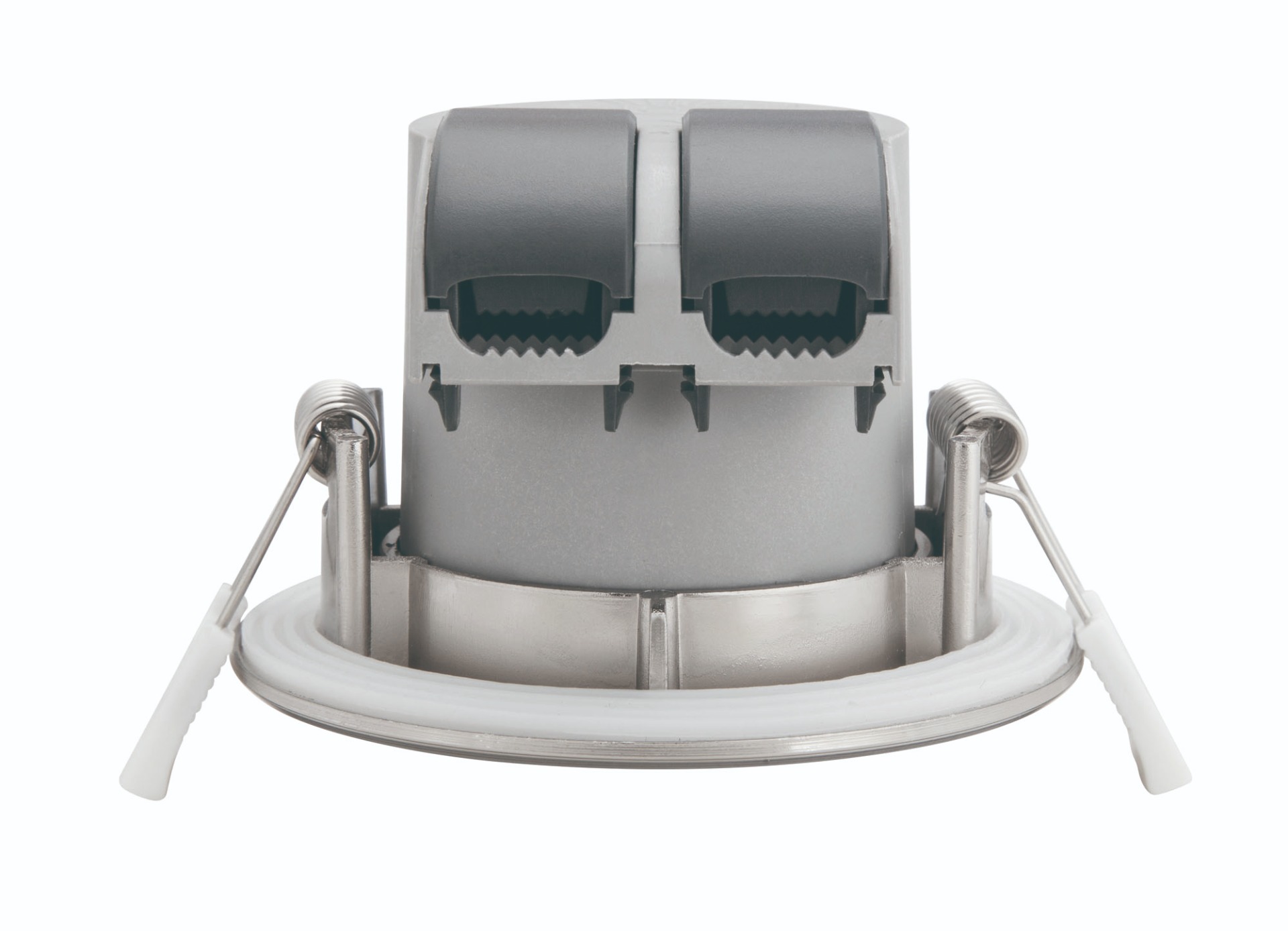 Moderne, nikkelkleurige inbouwspots, ideaal geschikt voor in de badkamer. De spots zijn dimbaar en beschikken over EyeComfort. Fijn licht voor de ogen! De inbouwspotjes bieden volgens hun IP65-classificatie bescherming tegen binnendringend vocht en zijn in de meeste standaard verlaagde plafonds te monteren, ook recht boven de douche of het bad.