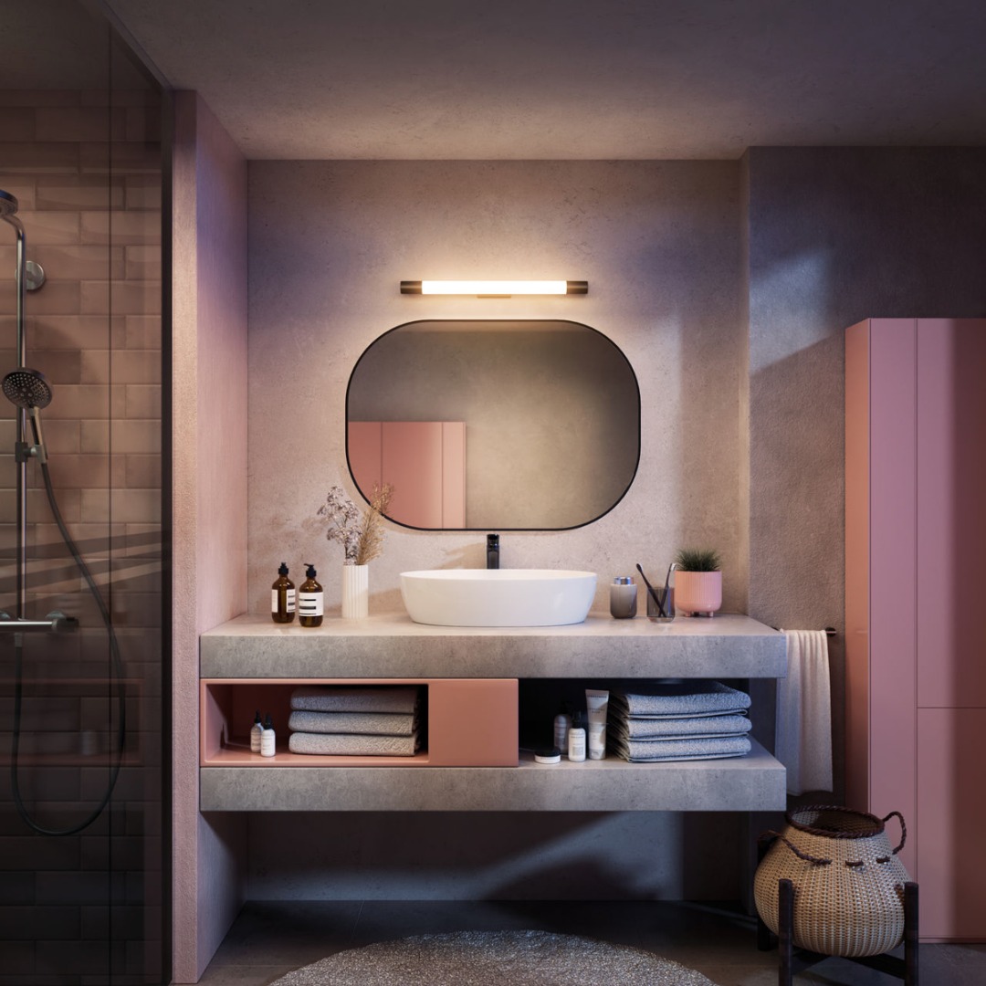 Deze langwerpige wandlamp van de Philips MyBathroom collectie is perfect geschikt voor spiegelverlichting. De lamp kan zowel horizonaal als verticaal worden gemonteerd en schijnt prachtig warm wit licht van 2700K. De lamp is niet dimbaar. Het armatuur van de lamp heeft een moderne zwarte kleur en past daardoor in veel interieurstijlen. De lamp is veilig om in de badkamer te gebruiken door zijn IP44 waarde.