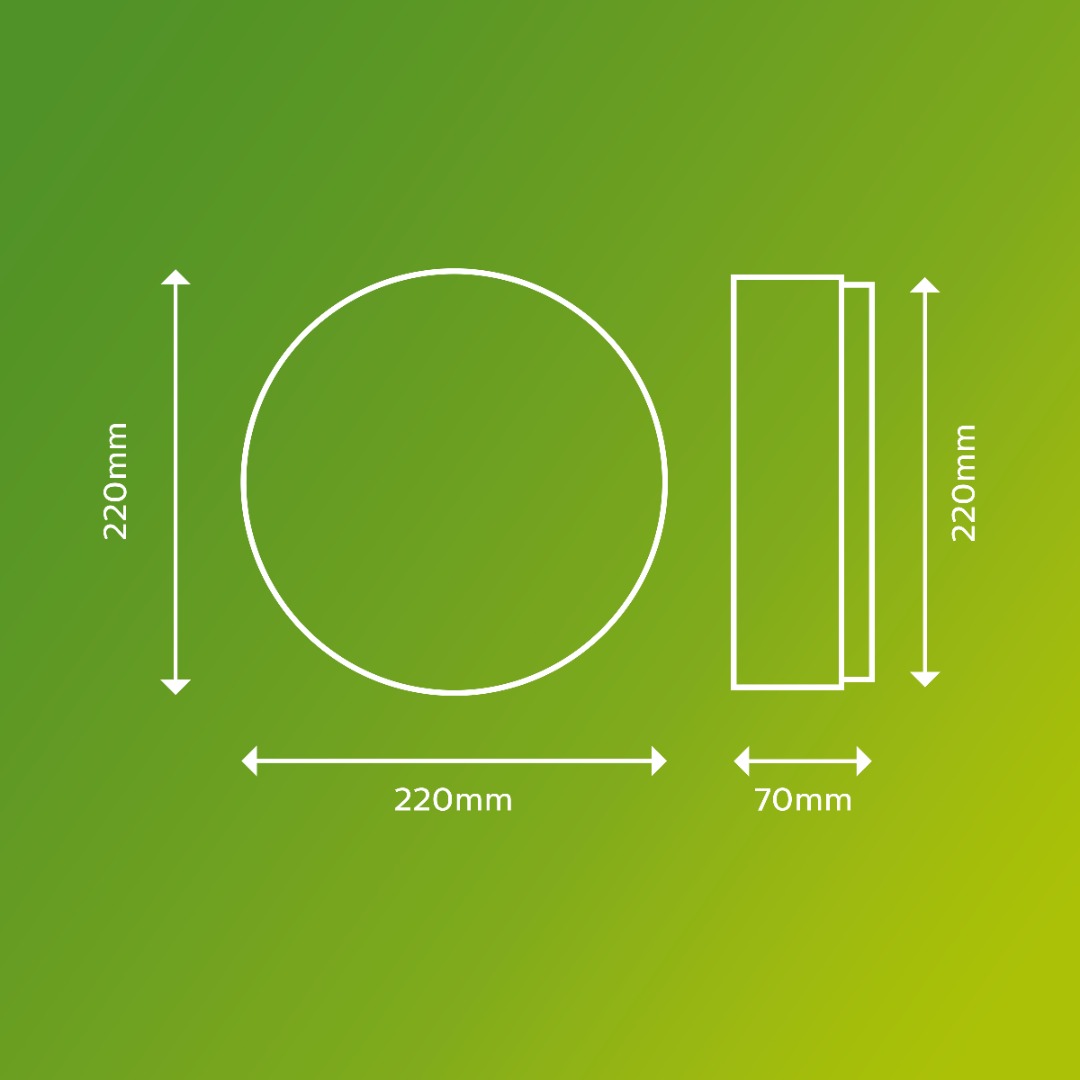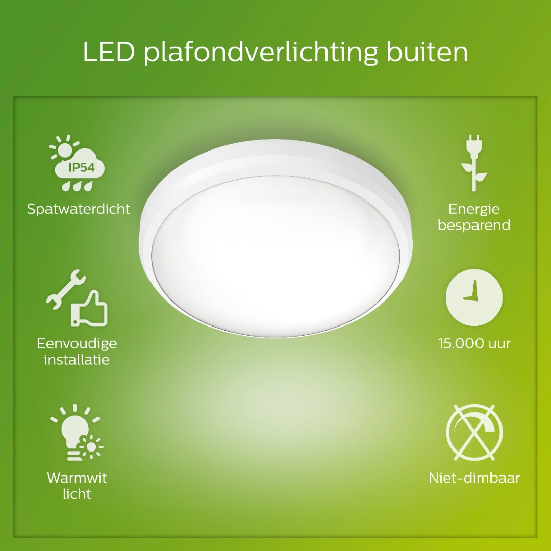 Een plafondlamp uit de collectie van Philips MyGarden met warm en comfortabel licht, ideaal voor de ogen. Dat is hoe deze plafondlamp Doris kan worden omschreven. Met een IP waarde van 54 ideaal geschikt om in vochtige ruitmes te plaatsen. De lamp is inclusief geïntegreerde ledmodule en heeft een witte rand om de lamp heen.