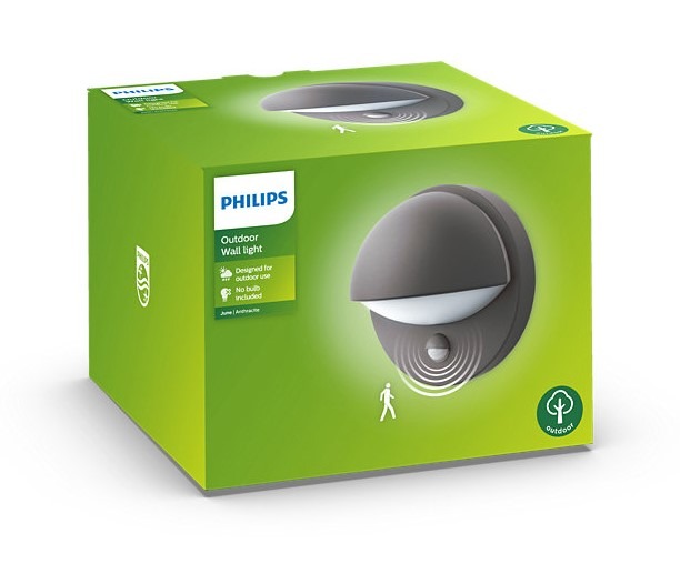 Voeg een moderne stijl toe aan uw tuin. Deze antracieten Philips myGarden-wandlamp valt op door zijn elegante vorm. Erg leuk om bijvoorbeeld naast uw deur te hangen of op de wand. Ook beschikbaar in een versie zonder bewegingssensor.