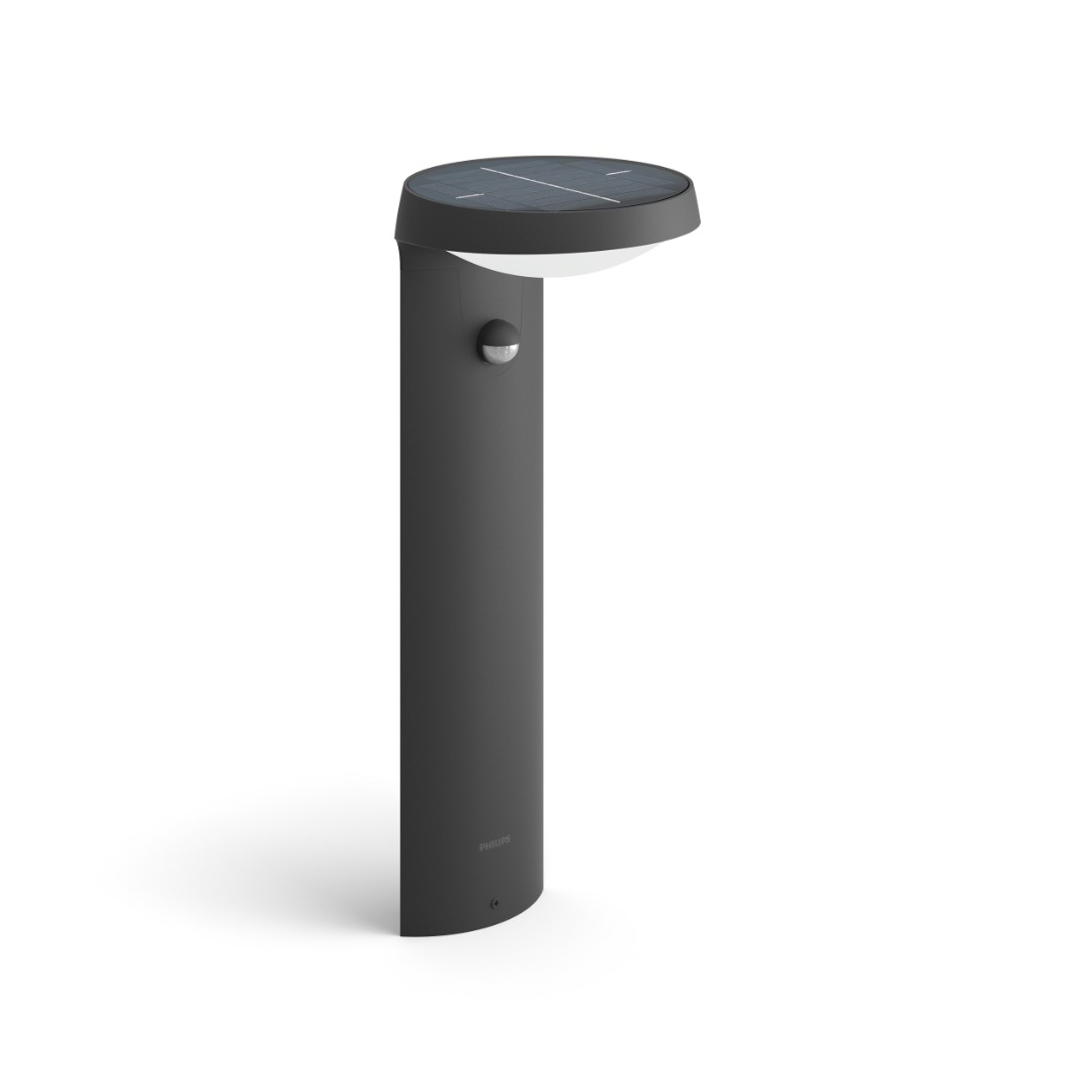 Een moderne vloerlamp uit de MyGarden collectie van Philips. Deze Tyla vloerlamp heeft een prachtig design in antracieten kleur en schijnt prachtig warm wit licht van 3000K. Door het handige solarpaneel laadt de lamp op en komt er geen ingewikkeld installatiewerk aan te pas. De lamp beschikt over een bewegingssensor. Detecteert de lamp beweging? Dan gaat het licht automatisch aan. Zo kom je altijd met een warm welkom binnen. Met een IP waarde van 44 is deze lamp geschikt om buiten te plaatsen en kan hij tegen een stootje. Erg leuk om te combineren met de andere lampen uit de Tyla collectie om één geheel te creëren.