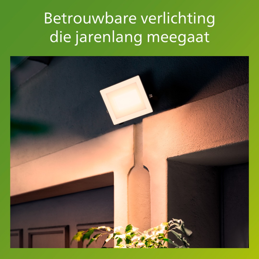 De decoflood lampen van Philips zijn er om u een veiliger gevoel te geven. Door de krachtige led-modules wordt uw tuin of oprit goed verlicht! De lampen zijn zowel met of zonder sensor te verkrijgen en beschikken over Ledlichtbronnen waar u op kunt vertrouwen! Met een lange levensduur van gemiddeld 20 jaar (20.000 uur) hoeft u zich geen zorgen meer te maken over onderhoud of het vervangen van de lamp. De Floodlights zijn speciaal ontworpen voor vochtige buitenruimtes en kunt u dus in weer en wind buiten laten hangen, zonder problemen.