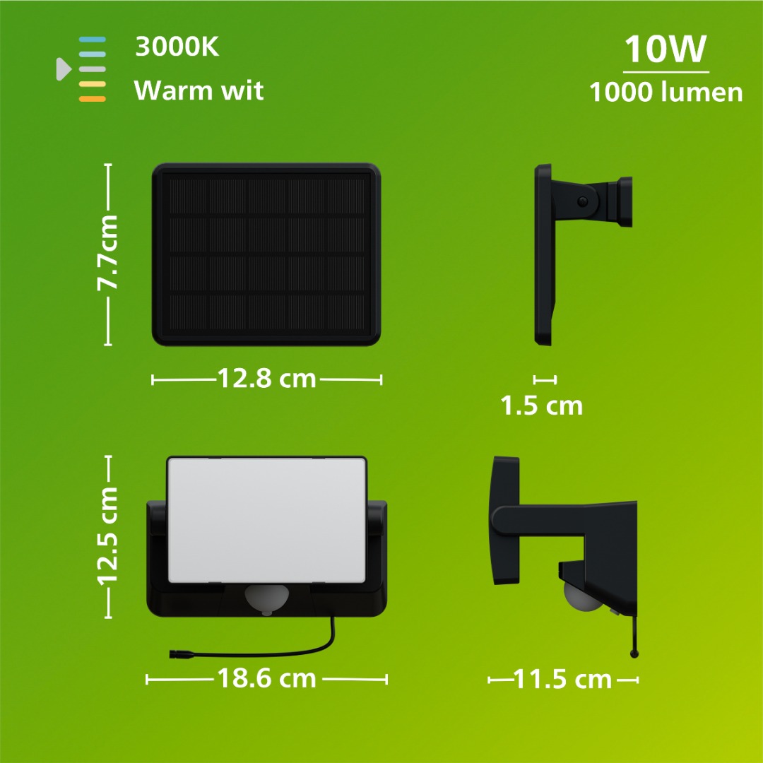 Een moderne, leuke wandlamp uit de Solar collectie van Philips met een prachtig design. De lamp werkt op solar en wordt opgeladen door het aparte solarpaneel, wat met een snoer verbonden is aan de lamp. Zo kan je het solarpaneel hangen waar de meeste zon is en de lamp eventueel onder een veranda of carport. Door de ingebouwde dag/nachtsensor wordt de lamp alleen ingeschakeld zodra de zonsondergang start en gaat hij automatisch weer uit als de zonsopgang zijn intrede maakt. Zo heb je alleen licht wanneer je het echt nodig hebt. En of dat nog niet genoeg is, heeft de lamp ook nog eens keuze uit 2 verschillende lichtstanden. Een waarbij de lamp uit is en bij beweging aangaat en een waarbij de lamp gedimd is en zodra er beweging gedetecteerd is hij maximaal aangaat. Kortom een strak design met vele mogelijkheden.