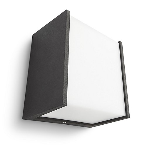 Deze zwart kleurige kubusvormige Philips myGarden-wandlamp geeft uw tuinmuur een moderne touch. Hoogwaardige lichteffecten worden door de openingen aan de onder- en bovenkant op de muur geprojecteerd.