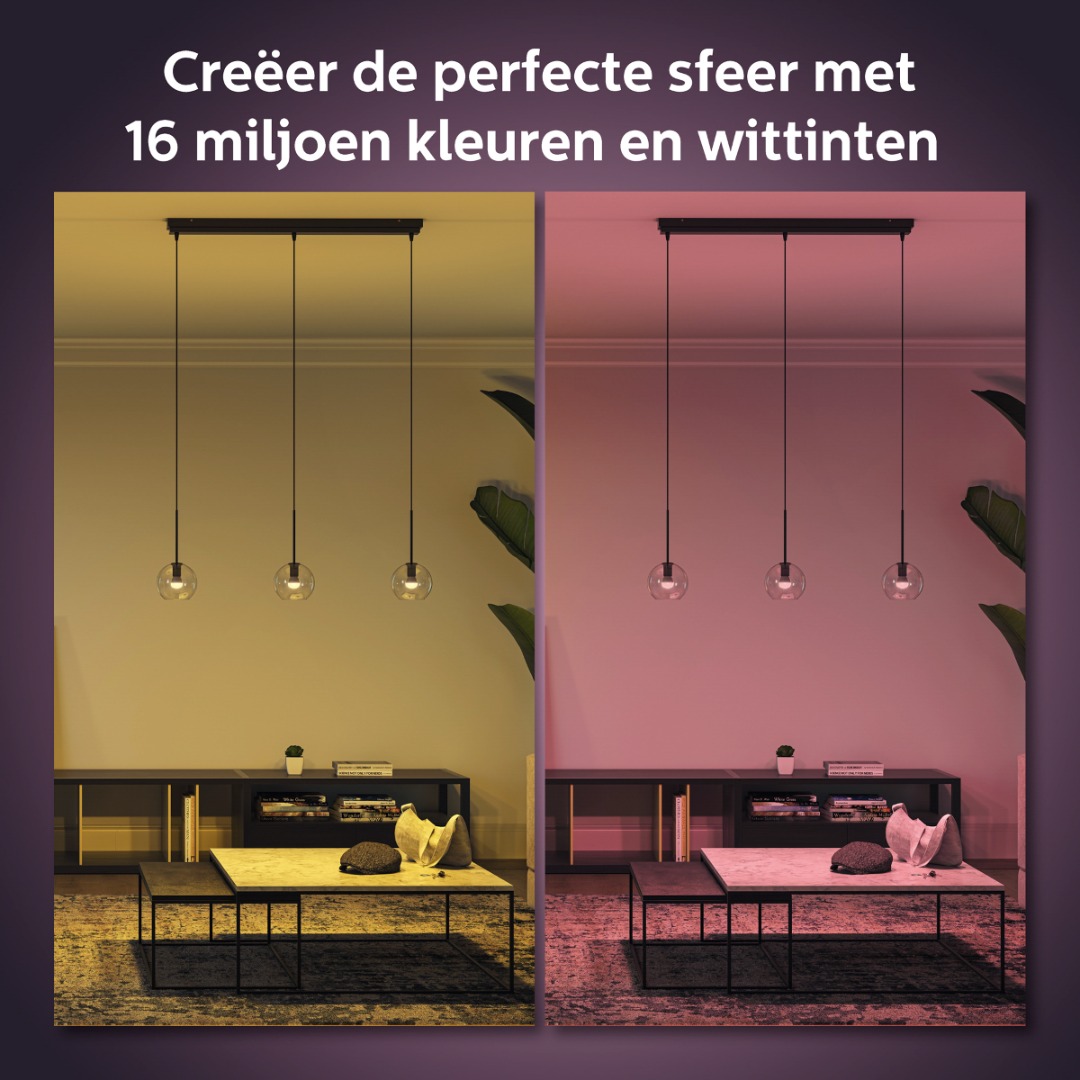 Met Philips Hue bepaal jij zelf welke sfeer je in huis wil hebben. Precies goed. Zonder kabels, een elektricien of installatiewerk, de lampen kunnen direct gedimd worden. Philips Hue biedt drie typen slimme lampen die in verschillende vormen, afmetingen en modellen worden geleverd. Kies Hue white voor eenvoudige bediening en comfort, Hue white ambiance voor ontspannend warmwit licht tot koel daglicht om je dagelijkse activiteiten te ondersteunen of Hue white and color ambiance voor een meeslepende ervaring. Ze werken allemaal samen om je woning slimmer, comfortabeler en energiezuiniger te maken.