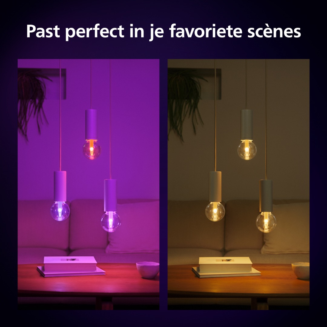Met Philips Hue bepaal jij zelf welke sfeer je in huis wil hebben. Precies goed. Zonder kabels, een elektricien of installatiewerk, de lampen kunnen direct gedimd worden. Philips Hue biedt drie typen slimme lampen die in verschillende vormen, afmetingen en modellen worden geleverd. Kies Hue white voor eenvoudige bediening en comfort, Hue white ambiance voor ontspannend warmwit licht tot koel daglicht om je dagelijkse activiteiten te ondersteunen of Hue white and color ambiance voor een meeslepende ervaring. Ze werken allemaal samen om je woning slimmer, comfortabeler en energiezuiniger te maken.