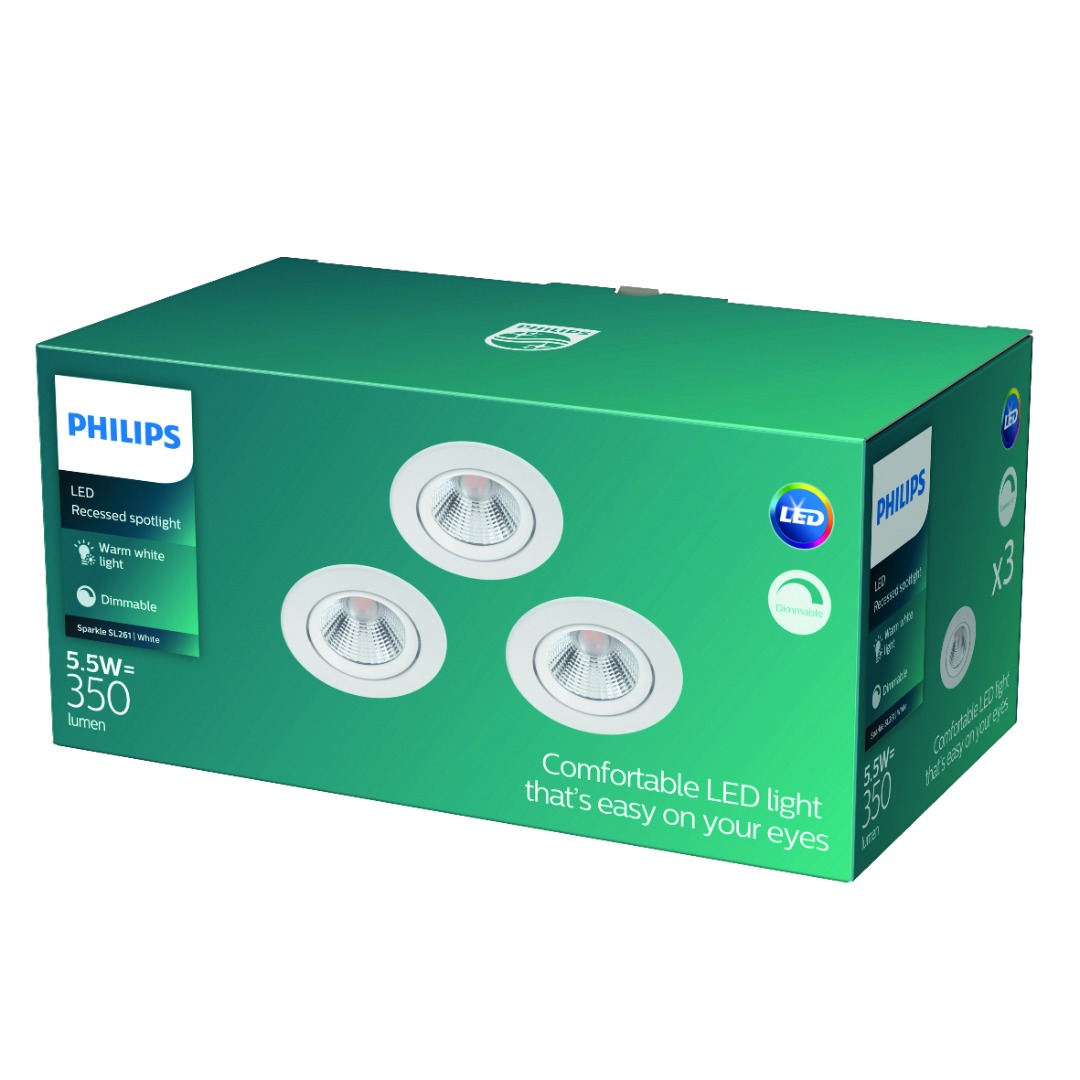 Een moderne, witte inbouwspot van Philips. Deze spot is uitgerust met een geïntegreerde led lamp, welke sfeervol en fijn licht voor de ogen geeft. De geïntegreerde led lichtbron is dimbaar, waarmee u de ideale sfeer creëert. Door de simplistische uitstraling valt de spot bijna niet op!