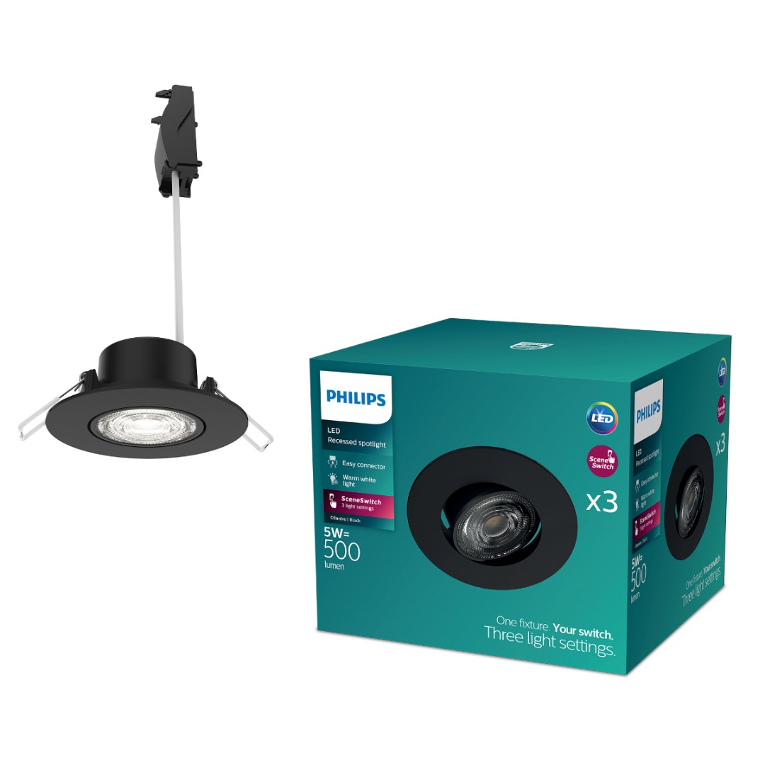 Deze Cilantro inbouwspot is een mooie, moderne inbouwspot met veel pluspunten. Zo kan de spot tot 30 graden kantelen om dingen beter uit te lichten, is het design plat en heeft de spot een lage inbouwdiepte en de spot heeft een geïntegreerde led lichtbron met Scene Switch technologie. Hiermee kan je de spot dimmen in 3 standen (100%-40%-10%), heel eenvoudig door middel van de wandschakelaar gewoon omklikken. Zo kan je de de sfeer aanpassen zonder ingewikkeld installatiewerk van een dimmer. De lichtbron heeft een warm witte kleur van 2700K en beschikt over EyeComfort technologie en verblind hierdoor niet. De spot heeft een IP waarde van 20 en is daarom alleen geschikt voor droge ruimtes en niet voor bijv. de badkamer of buiten. Het betreft hier een set met 3 spots.