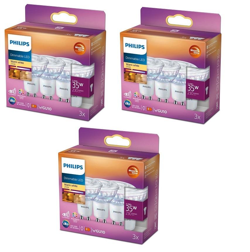 Philips LED Spot dimbaar (2,6W (35W), GU10, WarmGlow, 9 stuks) 929002065556