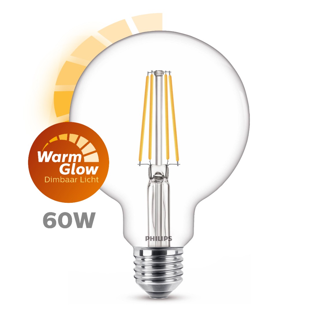 Een mooie heldere LED lamp die ongeveer 80% minder energie verbruikt dan de traditionele lampen. Hoe meer deze lamp gedimd wordt, hoe warmer de lichtkleur. Deze lamp heeft een mooie globe vorm en een diameter van 93 mm.