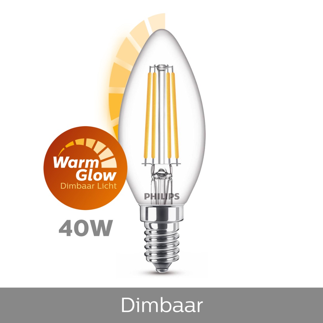 Een mooie LED lamp in kaarsvorm van Philips die schitterend warm wit licht geeft. Deze lamp gaat erg lang mee en zorgt voor veel energiebesparing. De lamp heeft een mooi design en is Warm Glow dimbaar. Hoe meer u de lamp dimt, hoe warmer de lichtkleur.