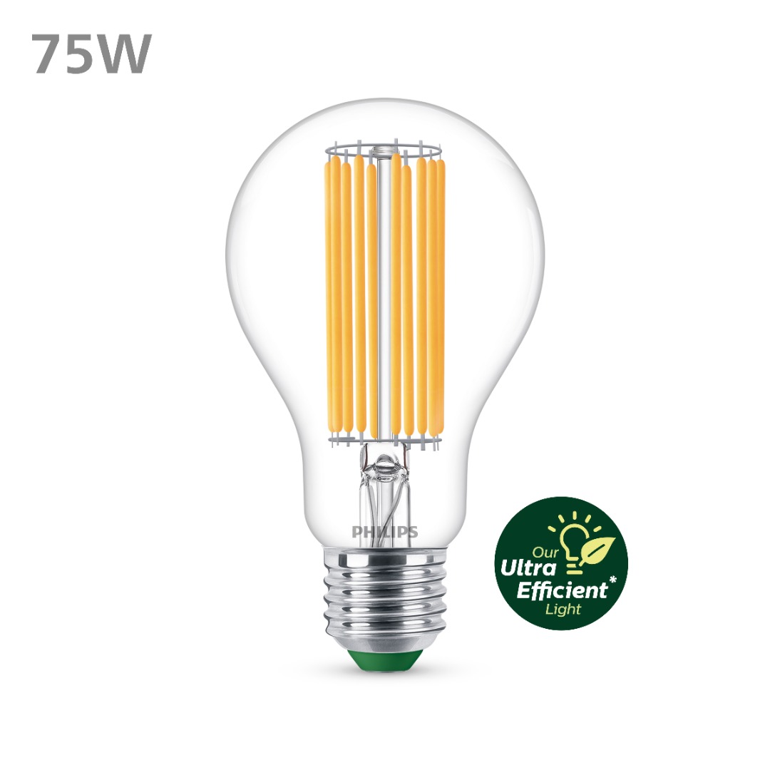 Een energiezuinige ledlamp uit de Groene lijn van Philips. Vertrouwde ledlampen in een vernieuwd, nog zuinig jasje. De lamp geeft warm wit licht van 3000K en is direct op volledige lichtsterkte. De mooie filament draden zorgen dat deze lamp gezien mag worden.