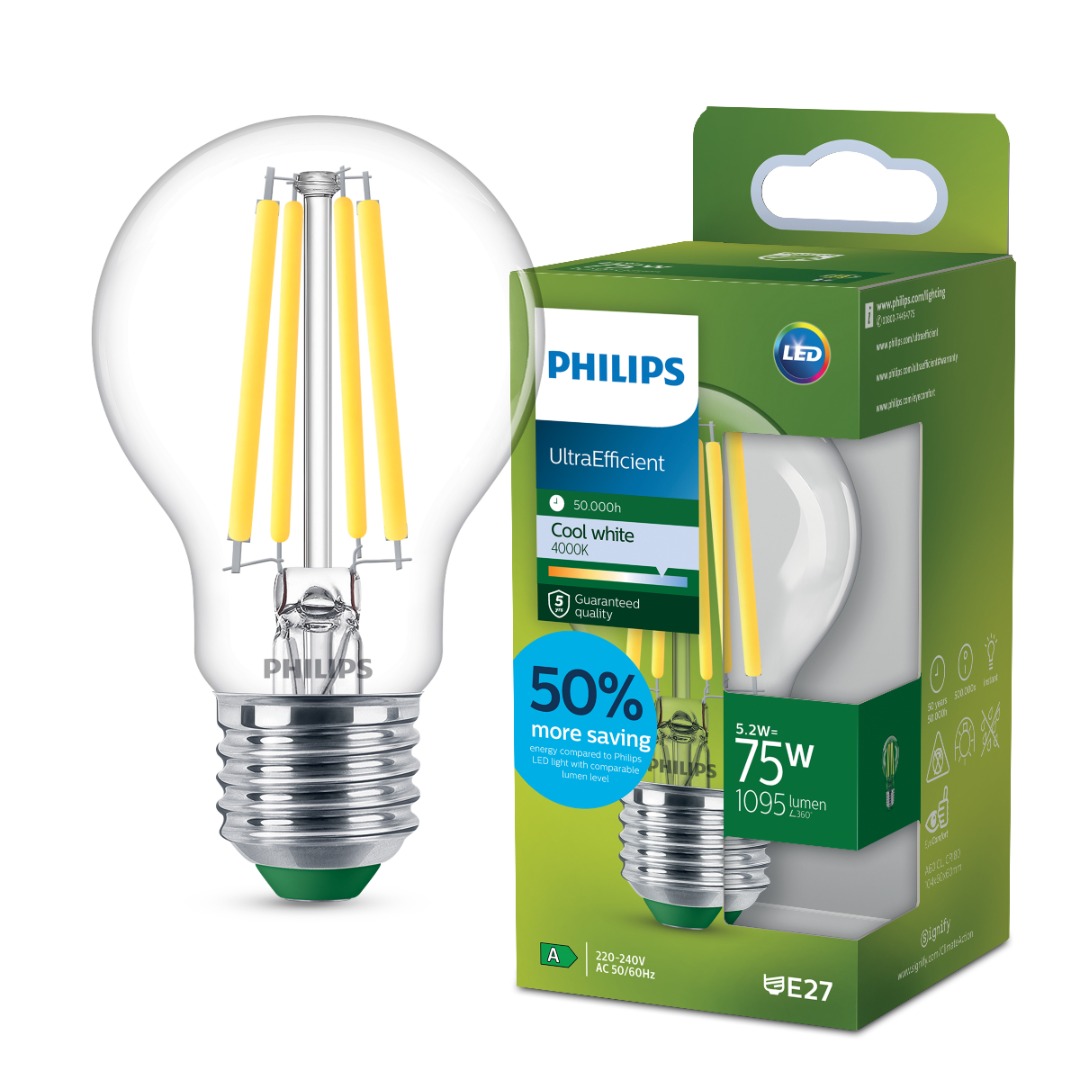 1x Philips LED Filament Lamp (5,2W (75W), E27, 4000K)  929004604401