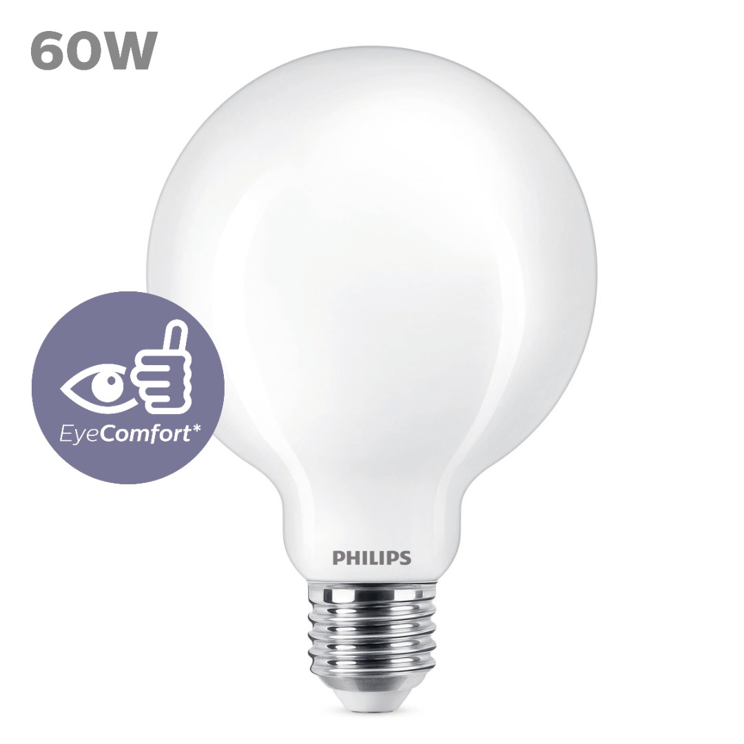 1x Philips LED Lamp Globe G93 mat (7W (60W), E27, koel wit)