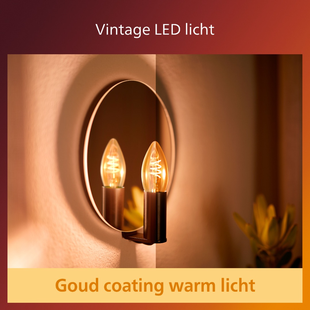 Een prachtige LED lamp van Philips die een opvallende uitstraling heeft door zijn vintage gouden look. Door zijn warme kleur geeft deze lamp veel sfeer af. De lamp is niet dimbaar.