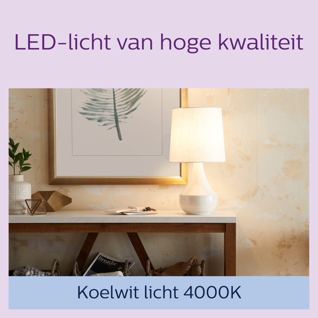 Philips LED lampen zijn zeer energiezuinige lampen die wel tot 80% energie besparen in vergelijking met standaardlampen. Hierdoor wordt er veel bespaard op de energierekening! De lampen gaan ook nog eens erg lang mee. De Philips LED lampen zijn beschikbaar in heel veel verschillende soorten en modellen. Bijvoorbeeld de standaard lampen, kaarslampen, GU10-lampen, kogellampen, tipkaarslampen, spotlampen, kopspiegellampen, globe lampen, flame lampen, R7S lampen, G4 lampen en kooldraad LED lampen. Veel lampen zijn ook dimbaar en hierdoor kunt u de perfecte sfeer in huis creëren.