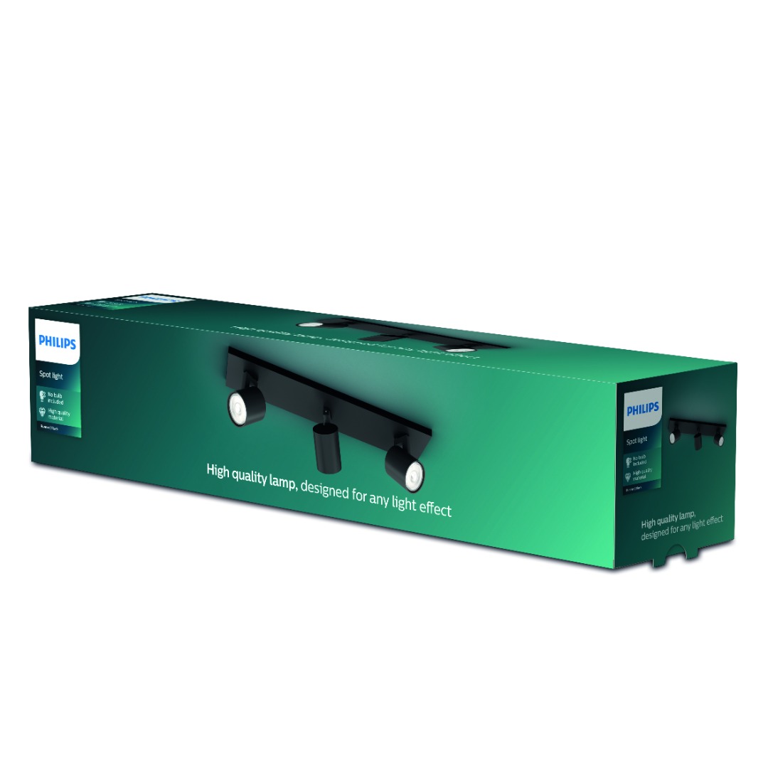 De vertrouwde Philips Runner nu in zwarte kleur! Komt bijna in elk interieur wel tot zijn recht. De spot is kantelbaar en draaibaar, zodat u zelf kunt kiezen waar u deze heen richt. De spot wordt geleverd zonder lichtbron en is geschikt voor drie lichtbronnen van ieder max. 20W