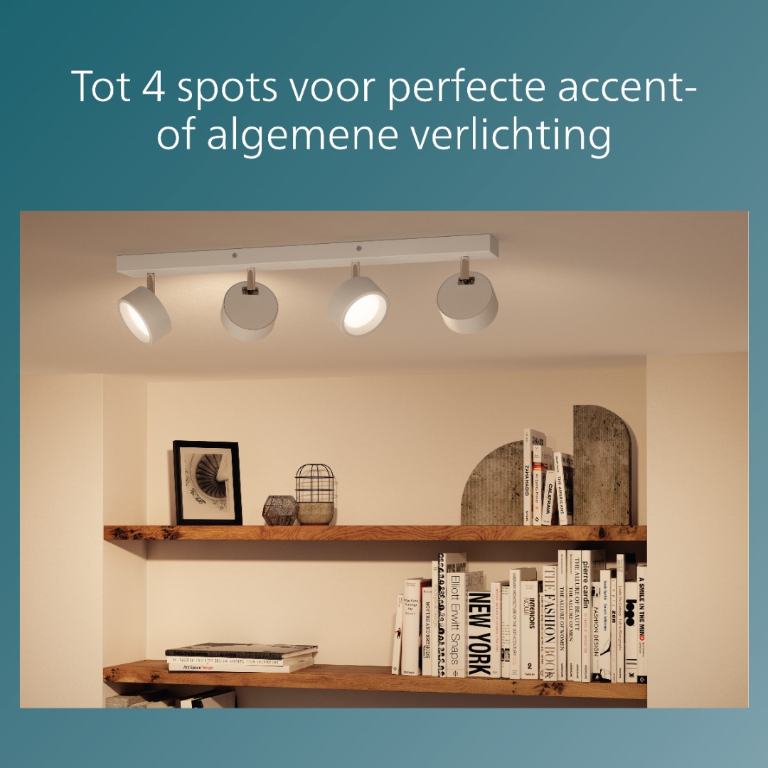 Hoe leuk is deze opbouwspot van Philips. De Bracia lijn is ook verkrijgbaar met meer of minder lichtpunten, leuk om met elkaar te combineren. Door het model heeft de spot een beetje retro vibe. Ideaal om diverse dingen uit te lichten. De spot heeft een geïntegreerde ledlamp welke warm wit licht van 2700K geeft en is niet dimbaar. De spot is draaibaar dus je kan het licht richten waar je wenst.