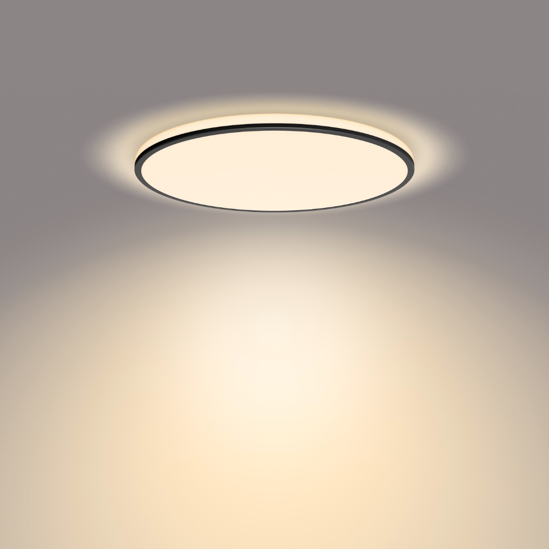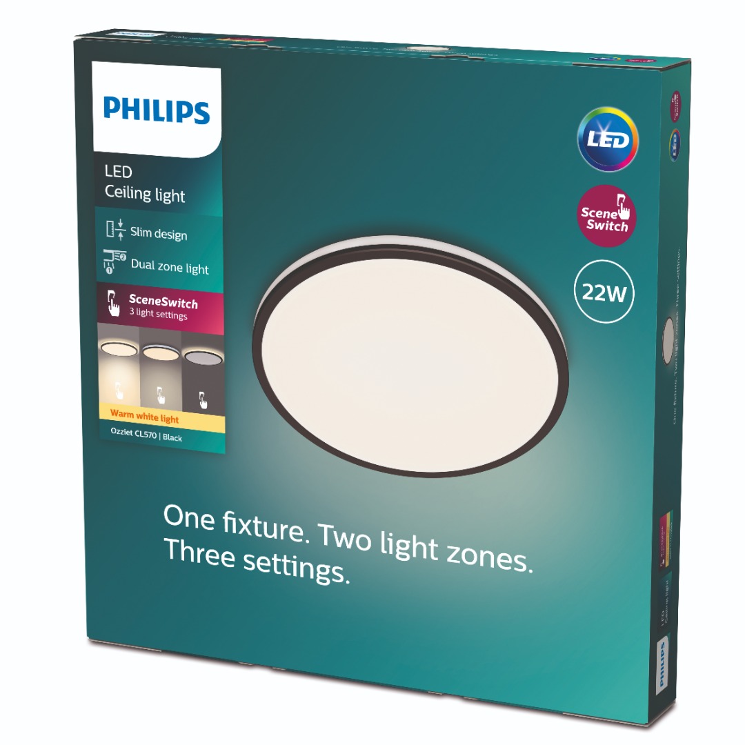 Op het eerste oog lijkt het een gewone, moderne lamp. Maar niets is minder waar! De lamp heeft namelijk een buitenste lichtrand en een middelste rand. Met uw schakelaar kunt u gemakkelijk switchen tussen de 3 verschillende opties, namelijk alleen de buitenring, alleen de binnenring of beide ringen aan, dat allemaal met alleen maar uw wandschakelaar! Eenvoudiger kan bijna niet. Bovendien heeft de lamp ook nog eens een slim design en is deze maar 4,5 cm hoog.