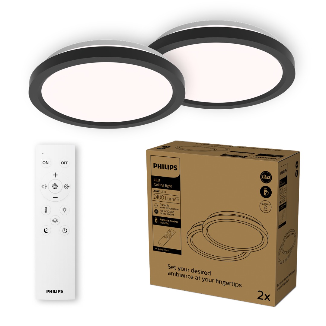 Een moderne plafondlamp die je eenvoudig bedient met de meegeleverde afstandsbediening. Zo kan je switchen tussen een warme lichtkleur van 2700K, een helder witte lichtkleur van 4000K tot een koele lichtkleur van 6500K, zo heb je altijd het juiste licht wat je nodig hebt. Tevens kan je het licht ook heel eenvoudig dimmen en dat allemaal met de afstandsbediening. Het zwarte design zorgt ervoor dat deze lamp vrijwel in elke ruimte goed past. De lamp heeft een IP waarde van 20 en is daardoor niet geschikt voor vochtige ruimtes zoals de badkamer. Het betreft hier een 3-pack met 2 plafondlampen en 1 afstandsbediening.