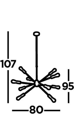 Een opvallende gouden hanglamp uit de Alpha collectie van het merk Searchlight. Met zijn uiterlijk kan de lamp toegepast worden in verschillende interieurstijlen. In de lamp zitten maar liefst 10 E27 fittingen die elk geschikt zijn voor maximaal 60 watt. Een ware eyecatcher in de woonkamer of boven de eettafel. De lamp is bij installatie in hoogte te verstellen naar wens.