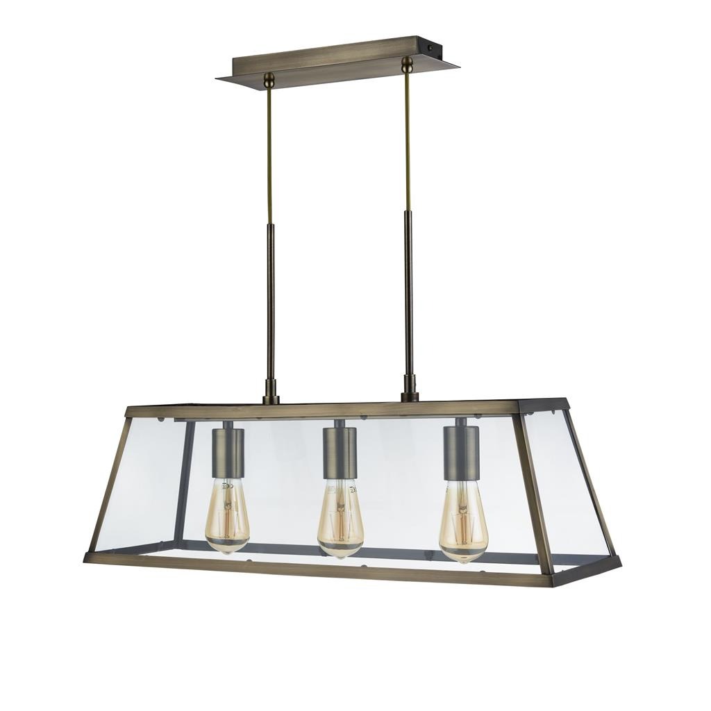 Een klassieke hanglamp uit de Voyager collectie van het merk Searchlight. De lamp is gemaakt van staal en glas. De messing lamp wordt geleverd exclusief lichtbronnen en is geschikt voor 3 E27 fittingen en 60 watt per fitting. De lamp kan goed geplaatst worden in verschillende soorten interieur. De Voyager is in hoogte verstelbaar bij installatie. Een prachtige lamp boven de eettafel of het keukeneiland.