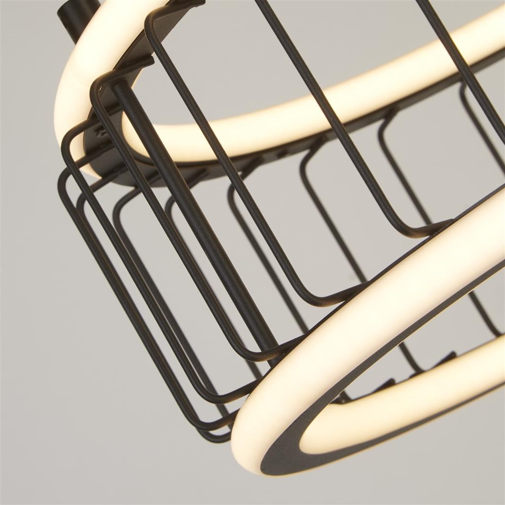Een hanglamp uit de Circolo collectie van het merk Searchlight. De zwarte lamp is gemaakt van aluminium, staal en siliconen. De lamp is inclusief LED lichtbron van 40 watt.  Leuk te combineren met de andere lampen uit de gelijknamige serie. De Circolo is bij installatie in hoogte te verstellen. Door het ontwerp van de lamp schijnt het licht niet alleen naar beneden maar ook naar boven wat extra sfeer creëert.
