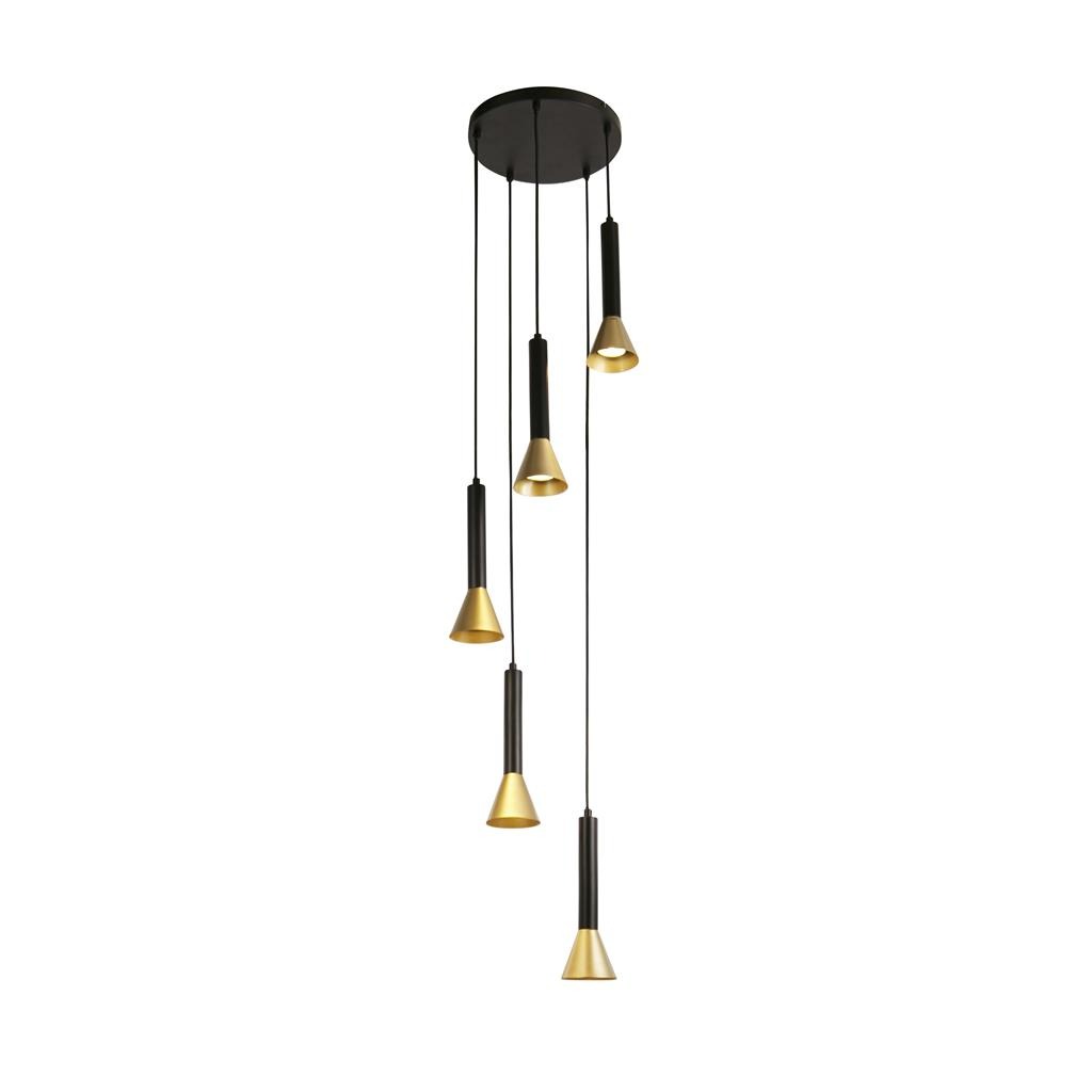 Een moderne 5-lichts hanglamp uit de Signal collectie van het merk Searchlight. Een lamp die mooi staat in verschillende interieurstijlen. Toepasselijk bijvoorbeeld boven de eettafel, in de woonkamer of in een hal. De lamp is exclusief lichtbronnen en geschikt voor GU10 fittingen met maximaal 5x 50 watt. De lamp is dimbaar middels geschikte lichtbronnen en een exclusieve externe dimmer. De lamp is bij installatie in hoogte te verstellen naar wens.