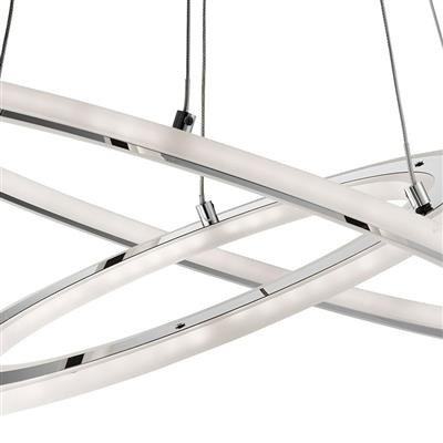 Een hanglamp uit de Solexa collectie van het merk Searchlight. Een lamp die mooi staat in een moderne interieurstijl. Toepasselijk bijvoorbeeld boven de eettafel, in de woonkamer of in een ruime hal als ware blikvanger. De lamp is tevens inclusief LED lichtbronnen van 2x 48 watt. De lamp is bij installatie in hoogte te verstellen naar wens. Met de verstelbare ringen kunt u een speels effect creëren.