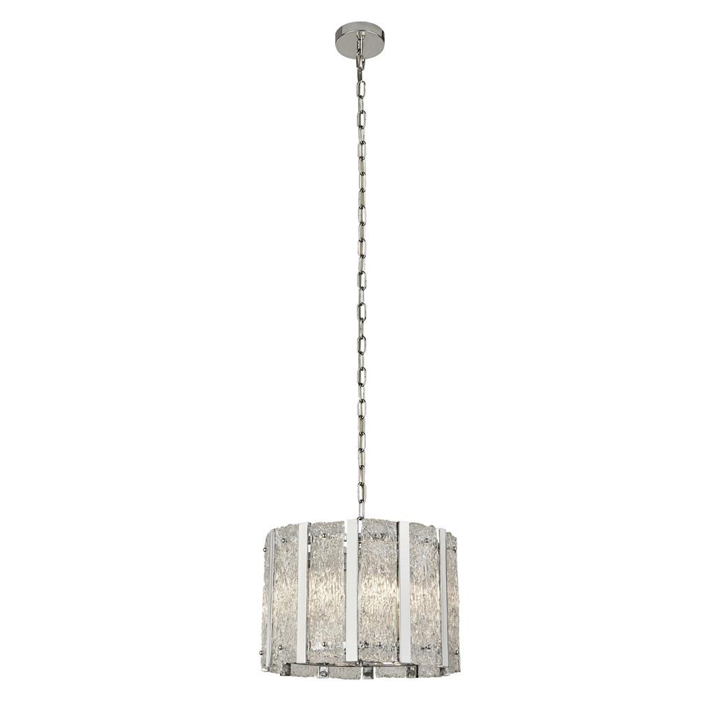Een prachtige hanglamp uit de collectie Alexandra van het merk Searchlight. De chromen lamp heeft glazen aquatex details. De lamp is exclusief lichtbronnen en geschikt voor max. 5 x 60 watt en E14 fitting. De lamp is in hoogte verstelbaar bij installatie. Mooi in bijvoorbeeld de eetkamer, hal, slaap- of woonkamer.