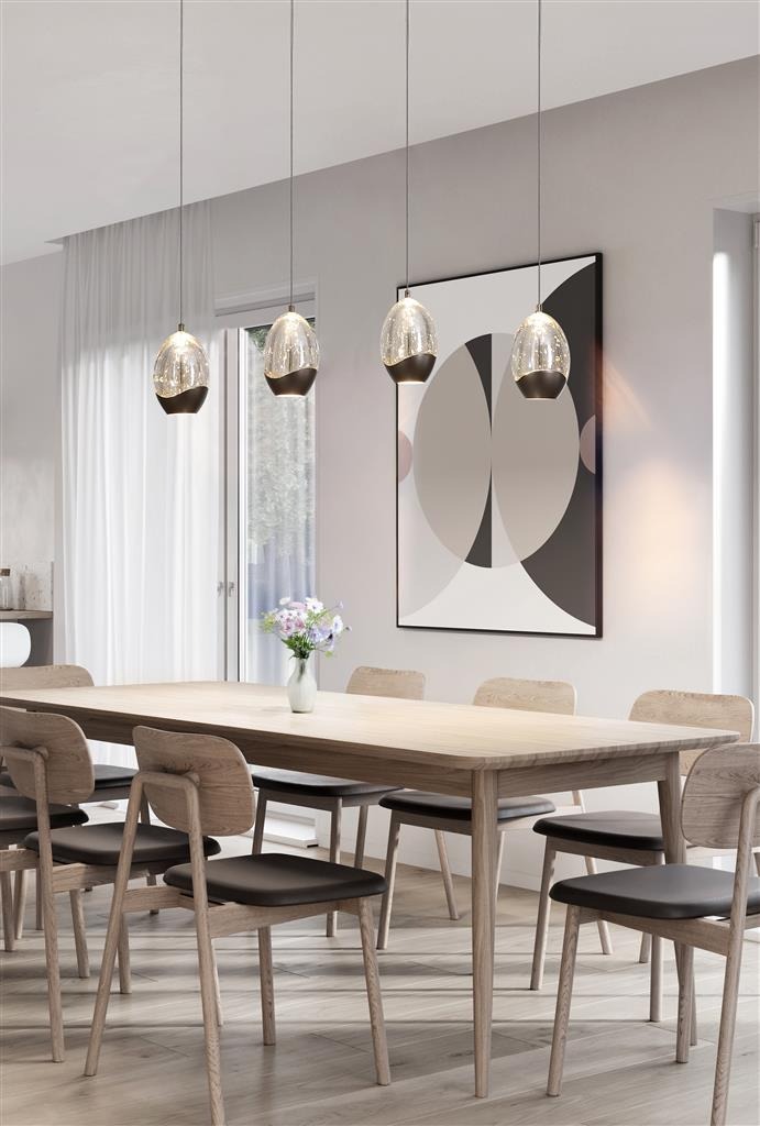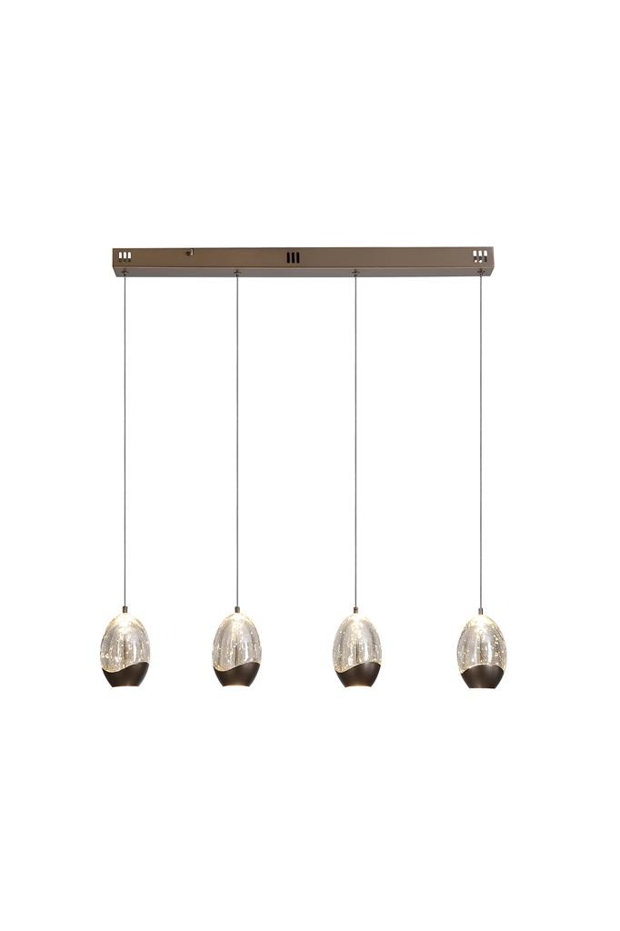 Een klassieke 4-lichts hanglamp uit de Seeds collectie van het merk Searchlight. De lamp heeft druppelvormige kappen en een tweekleurige afwerking. De Seeds combineert champagnekleurig glas met de trendy Searchlight kleur: Latte. Dit is een metallic bruinachtige koffie kleur die zorgt voor een subtiel maar luxe contrast. Deze tint komt terug in de plafondplaat, waardoor het ontwerp mooi in balans blijft. Deze lamp is perfect voor boven de eettafel of het keukeneiland. De lamp wordt geleverd inclusief LED lichtbronnen van 42 watt totaal. Verstelbaar in hoogte bij installatie tot maximaal 150 cm.