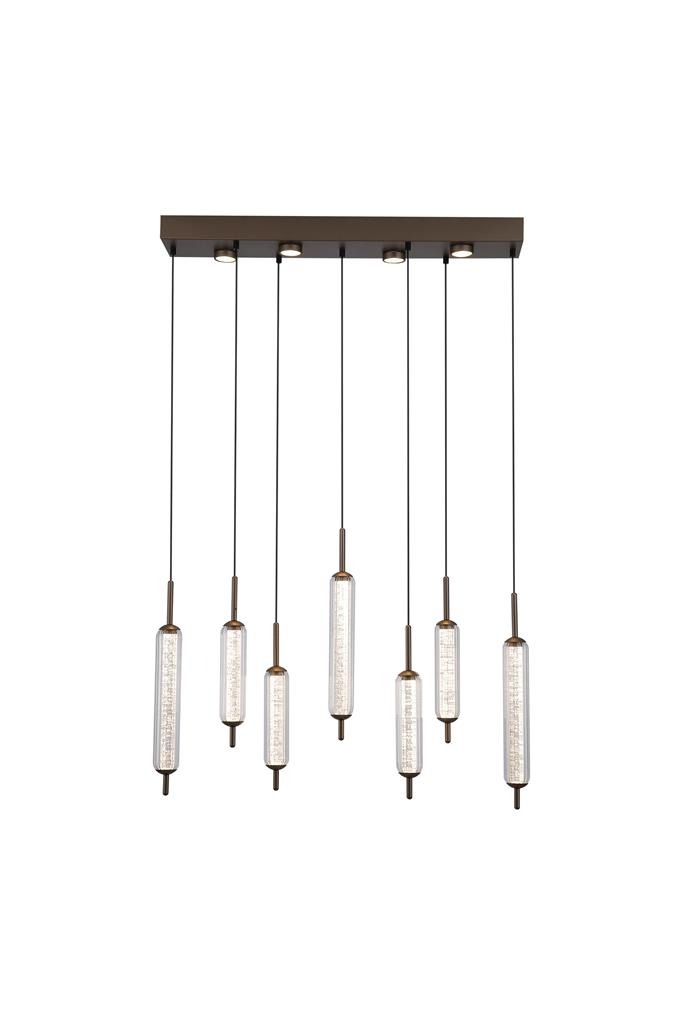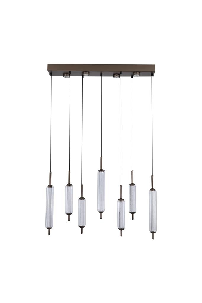 Een klassieke hanglamp uit de opvallende Cattail collectie van het merk Searchlight. Het silhouet van de lamp lijkt op een Lisdodde plant. De lamp heeft de trendy Searchlight kleur: Latte. Dit is een metallic bruinachtige koffie kleur die zorgt voor een subtiel maar luxe contrast. Deze lamp is perfect boven het keukeneiland of de eettafel. De lamp wordt geleverd inclusief 7 LED lichtbronnen van 33 watt totaal. Daarnaast heeft de lamp ook nog 4 spotjes in de plafondplaat. Deze zijn exclusief en hier kunt u lichtbronnen naar wens toevoegen. De fitting daarvan is GU10. De lamp is bij installatie in hoogte te verstellen.