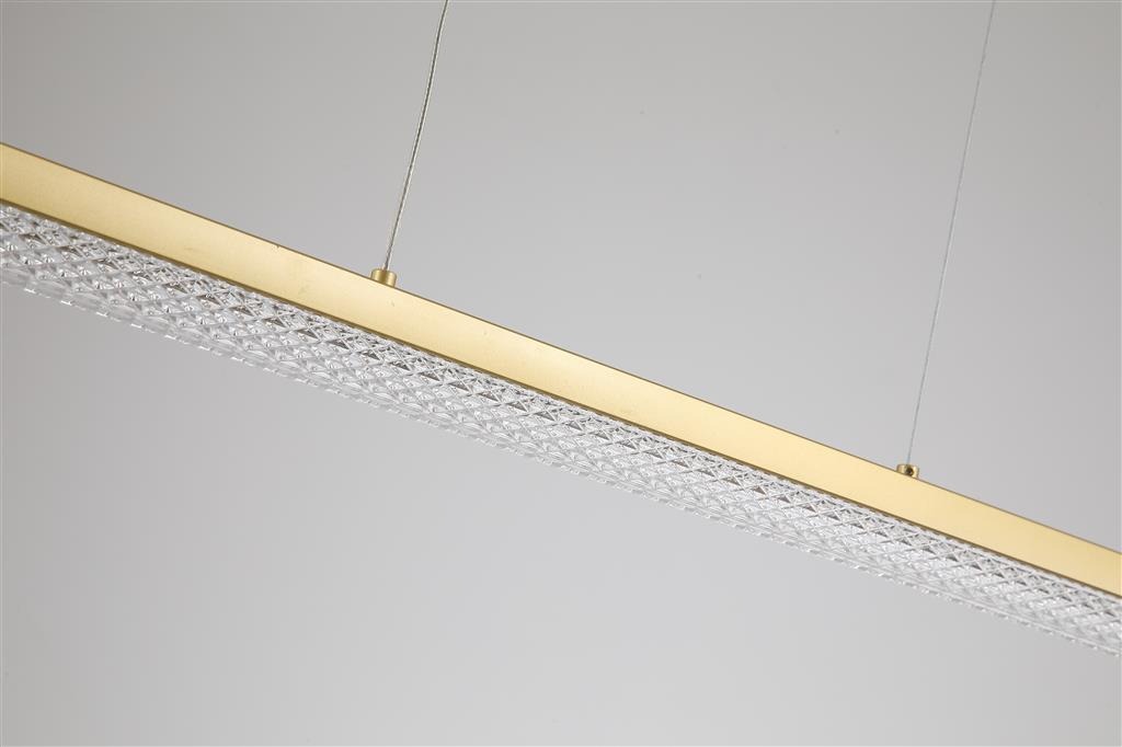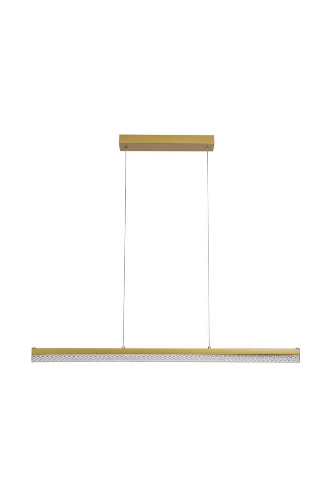 Een hanglamp uit de Madeleine collectie van het merk Searchlight. De Madeleine lamp combineert elegant design met functionele verlichting. Met de matte goudafwerking, geïntegreerde LED en mogelijkheid tot TRIAC-dimming (middels een exclusieve externe dimmer) zorgt deze 100 cm pendel voor een warme, gelijkmatige lichtverdeling boven eettafels of kookeilanden. Energiezuinig, duurzaam en stijlvol. Een verfijnde blikvanger voor elk modern interieur. De lamp wordt geleverd inclusief LED lichtbron van 12 watt. In hoogte verstelbaar tijdens de installatie.