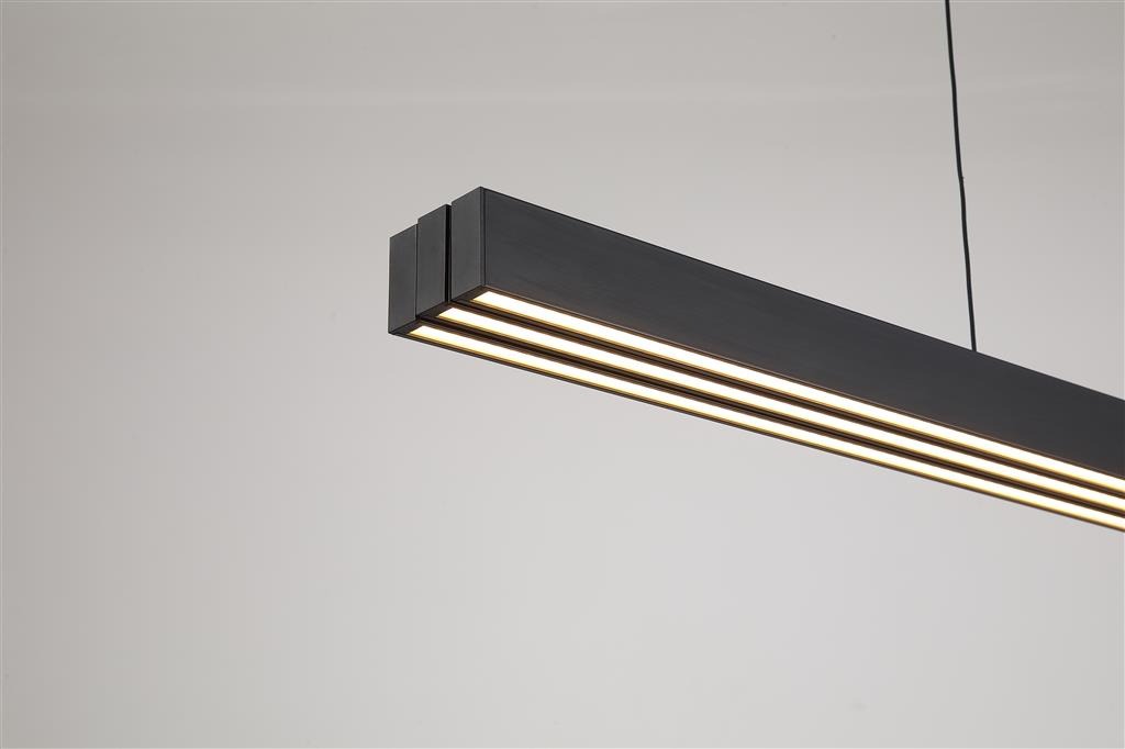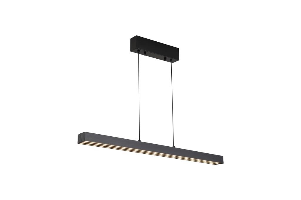 Creëer de perfecte balans tussen stijl en functionaliteit met deze lineaire LED-hanglamp uit de Linear collectie van het merk Searchlight. De drie verbonden panelen kunnen soepel worden verschoven waardoor de breedte verstelbaar is van 95 cm tot 150 cm. Schuif ze eenvoudig uit elkaar of juist samen afhankelijk van je indeling. De lamp heeft een mat zwarte kleur. De matte acryl diffusers zorgen voor een gelijkmatig niet-verblindend licht. Dankzij instelbare kleurtemperaturen en dimfunctie bepaal je zelf de sfeer – ideaal om te werken, te dineren of te ontspannen. Perfect voor moderne eetkamers, keukeneilanden of commerciële ruimtes. In hoogte verstelbaar tijdens de installatie.