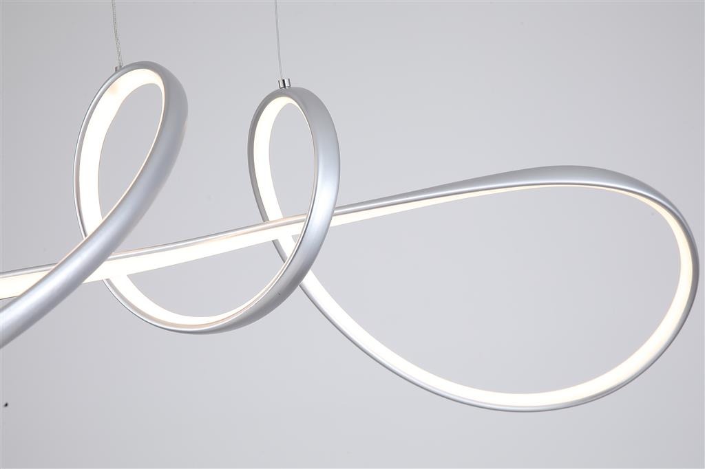 De Maisie hanglamp uit de collectie van Searchlight. Deze lamp is ontworpen als een kunstzinnig lichtobject. Het grijze metalen frame heeft vloeiende lijnen en zorgt voor mooie schaduwen en een opvallend effect vanuit elke hoek. Langs de vorm van het frame loopt een witte diffuser die een gelijkmatig warm licht verspreidt. Boven een eettafel of kookeiland is deze hanglamp een echte blikvanger. Dankzij de organische vormen en moderne stijl is de lamp perfect voor wie verlichting zoekt die niet alleen praktisch is maar ook een designstatement maakt. In hoogte verstelbaar tijdens de installatie. In 3 standen te dimmen met de wandschakelaar.
